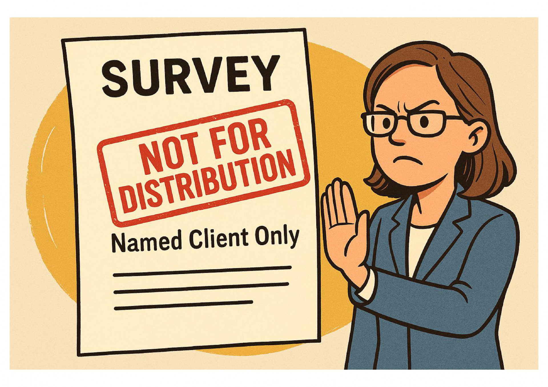 Sharing survey reports, or even excerpts, with third parties presents a significant liability risk. The contractual terms are explicit: the report is for the instructing client's private and confidential use and should not be reproduced or relied upon by third parties without the surveyor's express written authority.