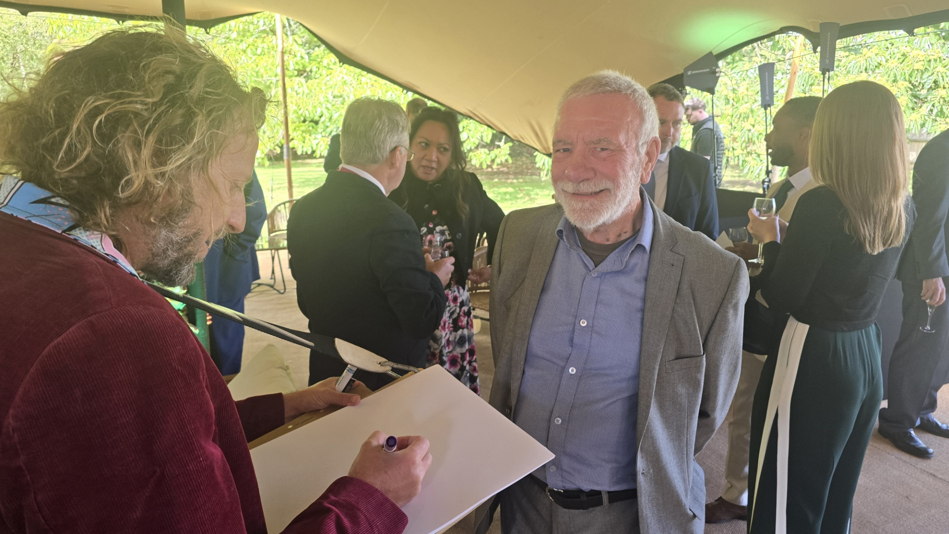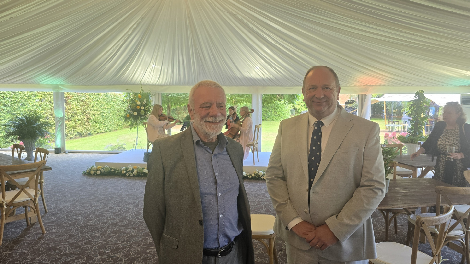 The heavens did open on us, but that did nothing to dampen the atmosphere! It was a fantastic affair, a brilliant bash to mark a century of achievement. Lord John Lytton proved a witty and generous host, guiding an afternoon of music, history, and hospitality. A classical string quartet and a harpist set the tone, while the catering team ensured there was far too much temptation for a Chairman who really ought to be shedding a pound or two. Malcolm and I even had our caricatures done — though I’m not convinced the artist took any liberties in flattering his subjects! It was all very posh and a truly remarkable event, despite the weather.
