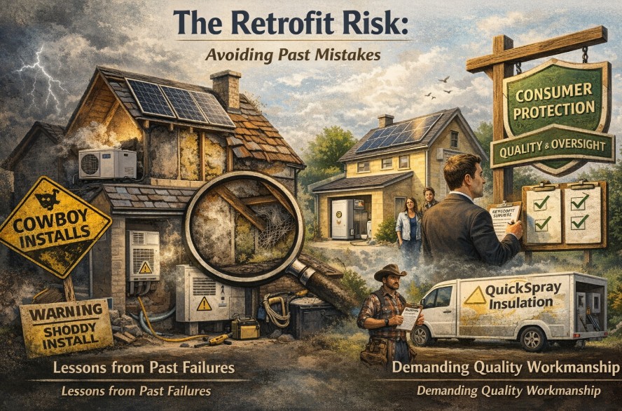 Increased deployment often correlates with higher defect rates. We saw it with cavity wall insulation in the early 2000s and with spray foam more recently. The rush to install heat pumps and solar panels to meet 2030 targets carries a risk of "cowboy" installations—poorly sited units, inadequate ventilation strategies that lead to mould, or damage to roof structures from heavy arrays.